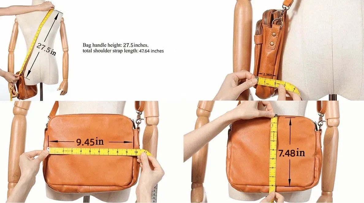 Bag handle height: 27.5 inches, total adjustable strap length: 47.64 inches,